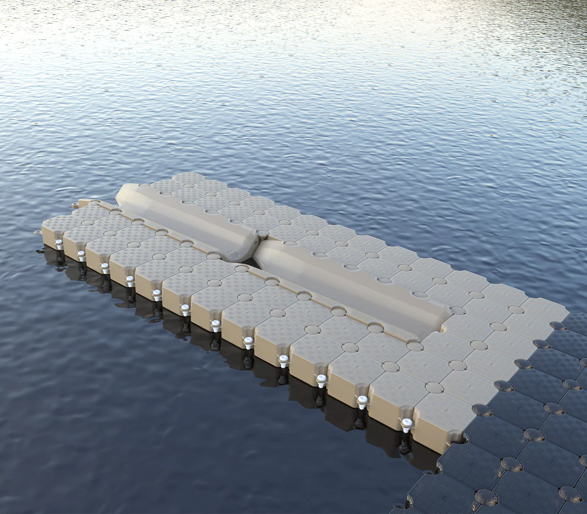 Denna torrdocka inkluderar standard G2-kuber och JetSlides. Beroende på din båts längd kan en av de två JetSlides ersättas med en expansionsplatta.