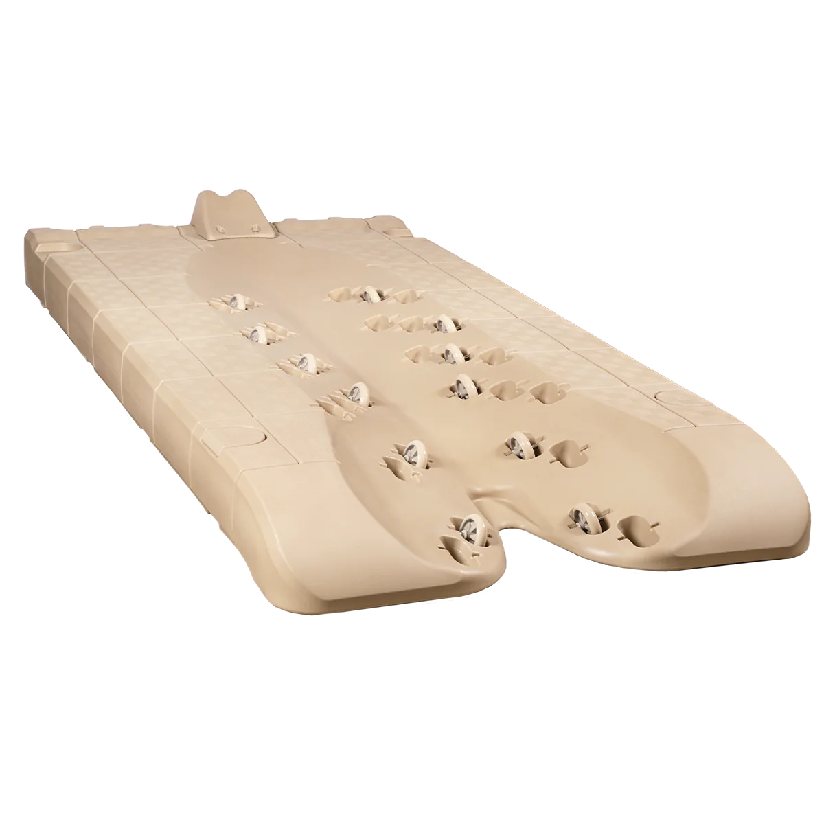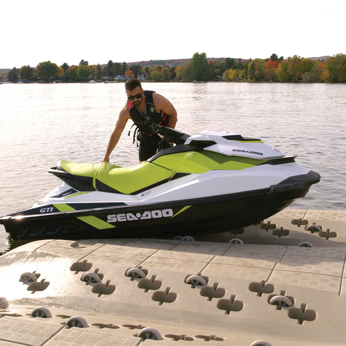 De 12 justerbara uretanhjulen gör det enkelt att köra på och av dockan, vilket underlättar sjösättningen av din vattenskoter.