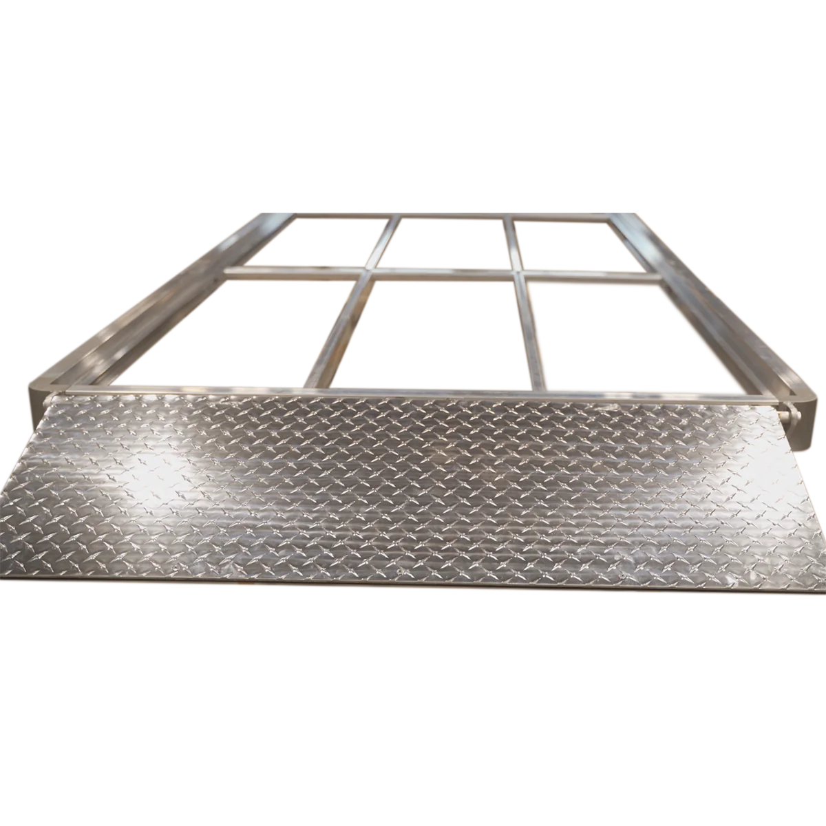 När du placerar den modulära landgången direkt på kajen, kan du förbättra tillgängligheten genom att införliva denna övergångsplatta för att underlätta passagen av rullande utrustning som rullstol, kylare etc. Övergångsplattans svängbara karaktär säkerställer utmärkt anpassningsförmåga till vågornas rörelse. .